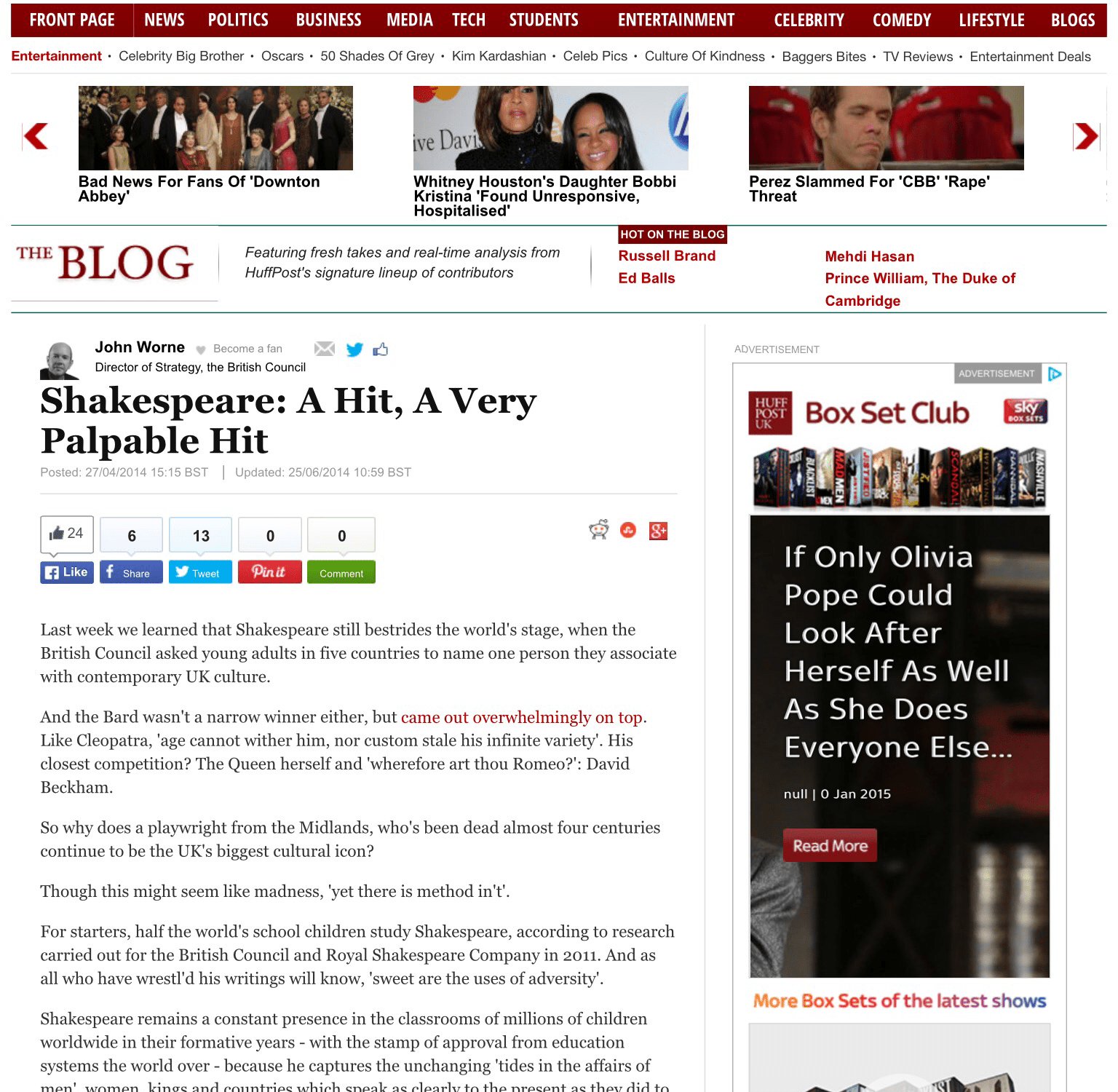 And, finally, there’s the one thing that underpins all of this – as Hamlet said, ‘the play’s the thing’. The reason Shakespeare’s words are our words, and his works are our children’s school work, is the substance. Content is king.